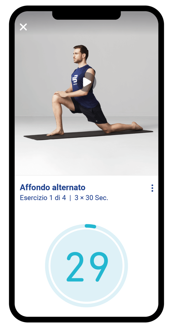 All’inizio l’app richiede di inserire alcuni dati che sono necessari per l’elaborazione del programma di allenamento personalizzato. Nel corso del programma, l’app ti chiederà regolarmente come ti senti e che progressi hai fatto. Così il programma di allenamento verrà costantemente aggiornato, adattandolo alla situazione attuale. In caso di dubbio, parlane assolutamente con il tuo medico o fisioterapista. -
